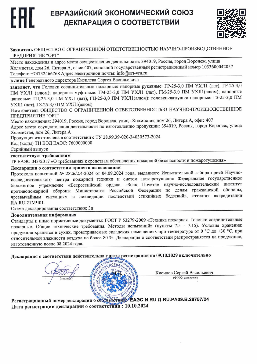 Пожарная соединительная головка-заглушка ГЗ-25 (3,0) из алюминиевого сплава выпускается по ТУ 28,99,39-020-34030573-2024.
