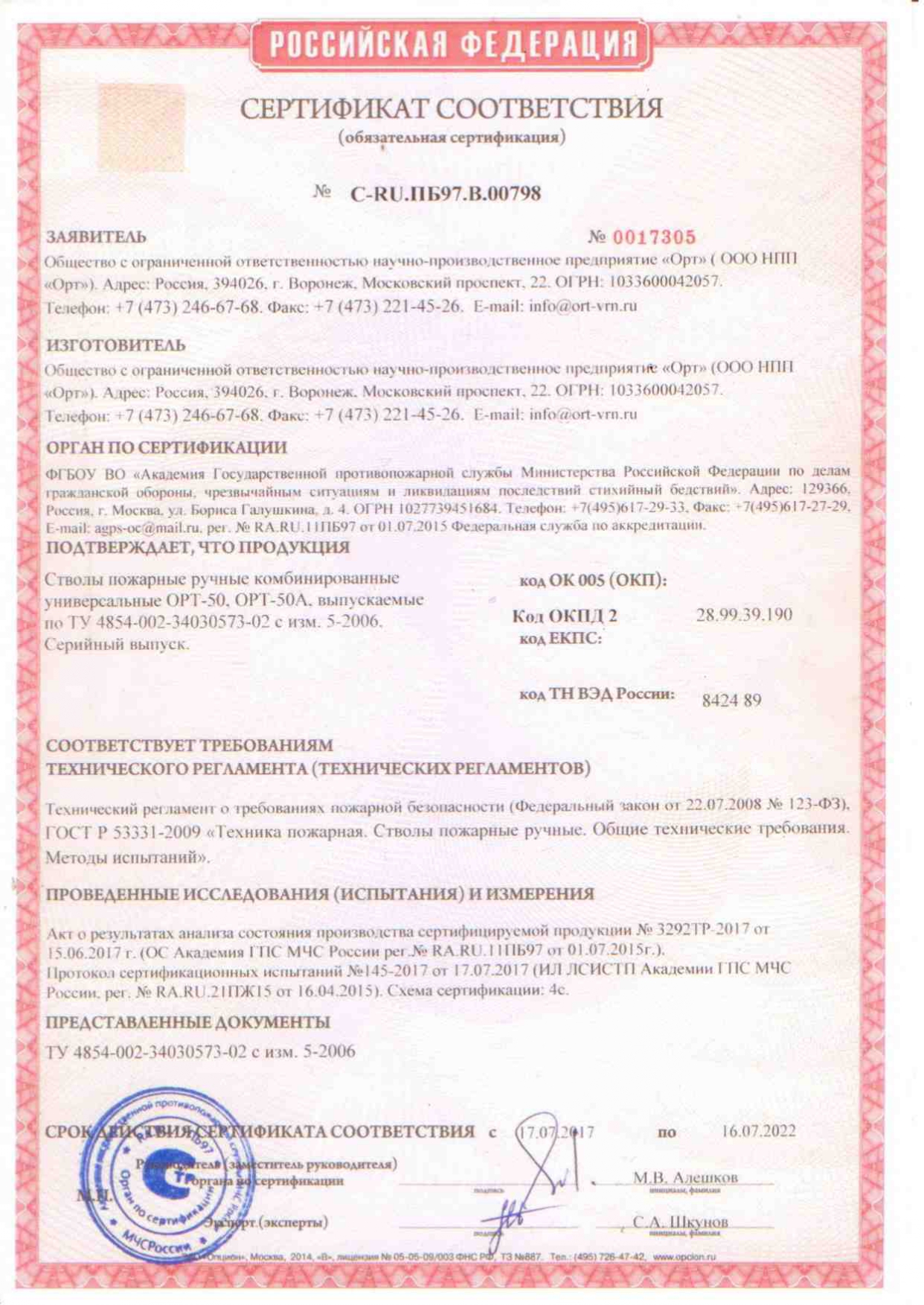 Мы предлагаем стволы пожарные ведущих Российских производителей. Приобрести товар «Пожарный ствол ОРТ-50 с ОРТ-50ГПC», артикул 28455 Вы можете on-line на нашем сайте добавив товар в корзину или позвонив по телефону 8-800-550-48-39 , а также в пункте выдачи в г. Тверь, п. Элеватор, 3-й переулок, дом 6, с.1